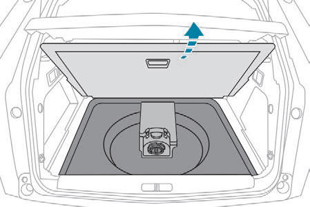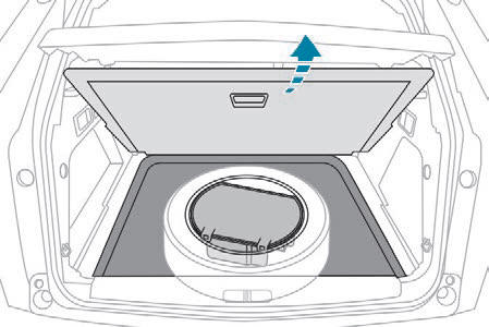 Podnieść podłogę bagażnika na ile się da, aby uzyskać dostęp do schowka.